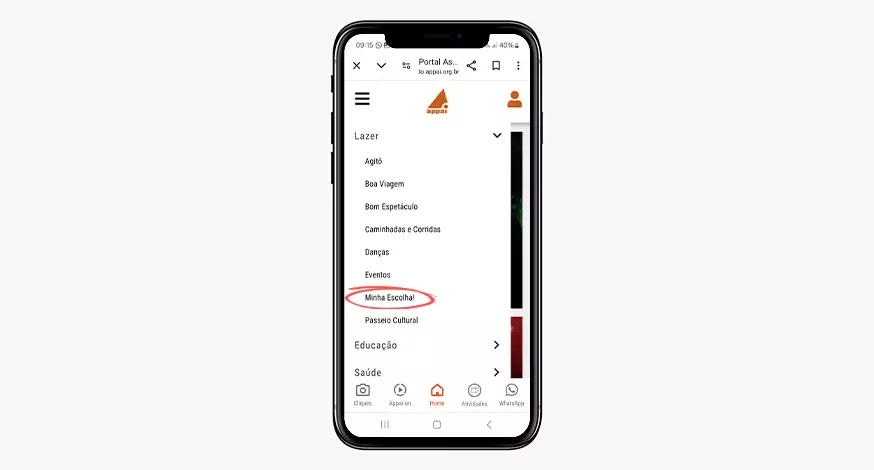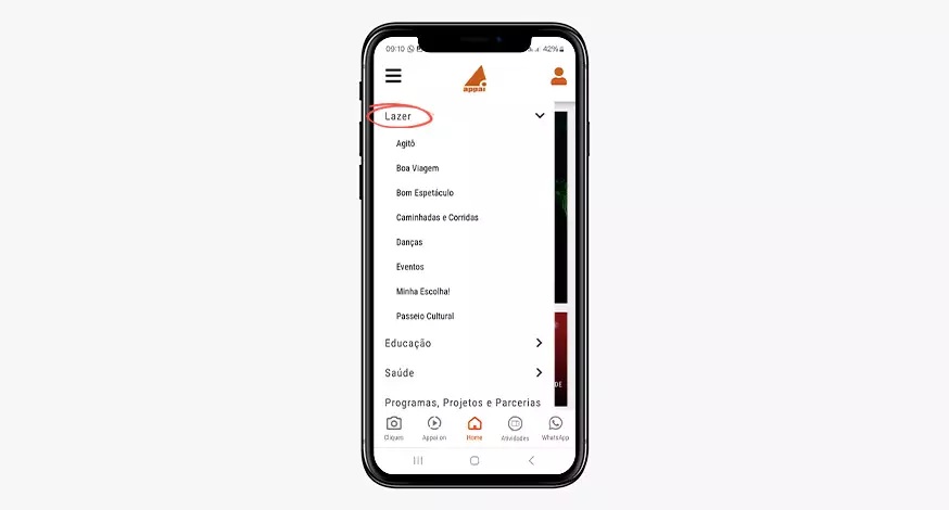 • Acesse o Portal do Associado. No canto superior esquerdo, clique nos três tracinhos e, em seguida, no menu “Lazer”.