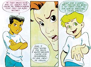 Para instrumentalizar os professores que participam dos treinamentos, a BEMFAM criou o Manual de Apoio a Educadores, sobre prevenção de DSTs/Aids. O manual também apresenta um capítulo sobre "Métodos e Técnicas de Ensino e Aprendizagem", contendo várias "dicas" sobre a difícil tarefa de transmitir os ensinamentos recebidos aos estudantes. Por fim, ainda há outro capítulo indicando uma excelente bibliografia e vídeos para o professor que queira - ou precise - se aprofundar no assunto. Segundo Inês, não foram notadas diferenças significativas entre as escolas do Rio e do Nordeste, no que se refere ao conhecimento (melhor seria dizer desconhecimento) do próprio corpo e da sexualidade. A dificuldade de falar no assunto é geral. "O engraçado é que os alunos sempre começam a abordá-lo dizendo que "se preocupam em dar prazer ao parceiro", mas a maioria não conhece nem o próprio aparelho genital", diz a socióloga. À medida que o programa avança e as atividades têm continuidade, as perguntas e dúvidas começam a surgir com a mesma intensidade. Um dos mais valiosos instrumentos de que a BEMFAM dispõe para o trabalho de orientação sexual é uma revista em quadrinhos especialmente criada para este fim, na qual uma turma de meninos e meninas se vê às voltas com a iniciação sexual. O gibi, além de informações sobre prevenção contra Aids e outras DSTs, ainda orienta quem está começando a pensar em se relacionar sexualmente: |